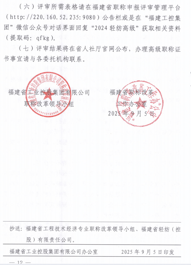 福建省工业控股集团职称改革领导小组福建省职称改革工作办公室文件-关于开展福建省轻纺专业高级工程师职称评审工作的通知.pdf