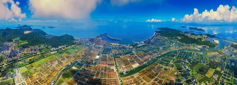 (山海如卷,盐田作画。福建生态盐田镶嵌于青山碧水间,将大海的精华凝粹为人间至味)