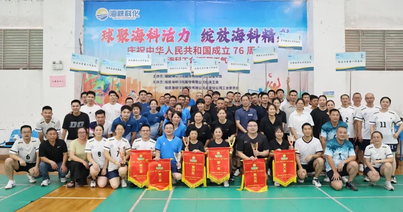 海峡科化公司举办庆祝新中国成立76周年暨第三届“海科工会杯”职工气排球赛。赛场上,12支代表队运动员们全力以赴、默契配合,在攻防交替中充分彰显“协同拼搏、追求卓越”的海科精神,生动诠释了“上下同欲、风雨同舟”的团队理念。大家纷纷表示,将把赛场上的激情与活力延续到工作中,以饱满的热情为推动海峡科化公司高质量发展注入新动力。