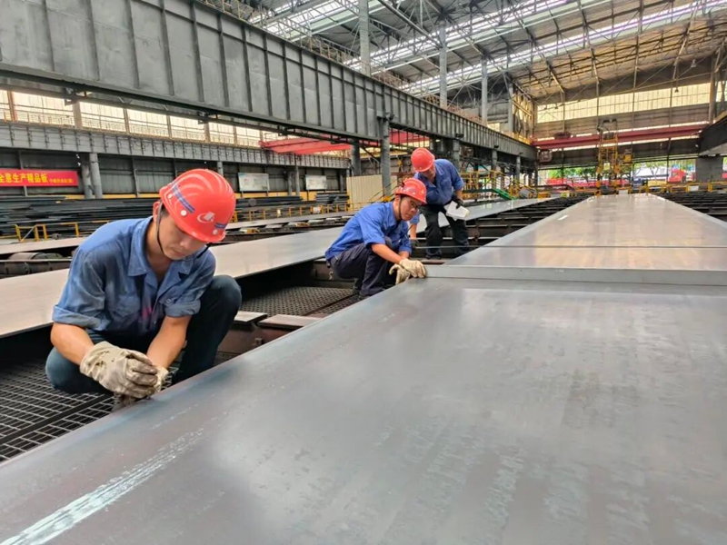 三钢闽光股份公司板材事业部中板作业区热轧乙班骨干和职工坚守岗位,一丝不苟地测量钢板厚度、宽度、不平度等参数,为生产高质量板材保驾护航,以优质产品更好地展现企业的良好形象。